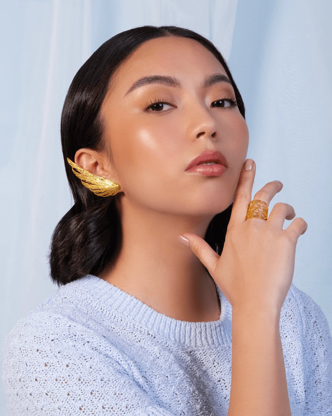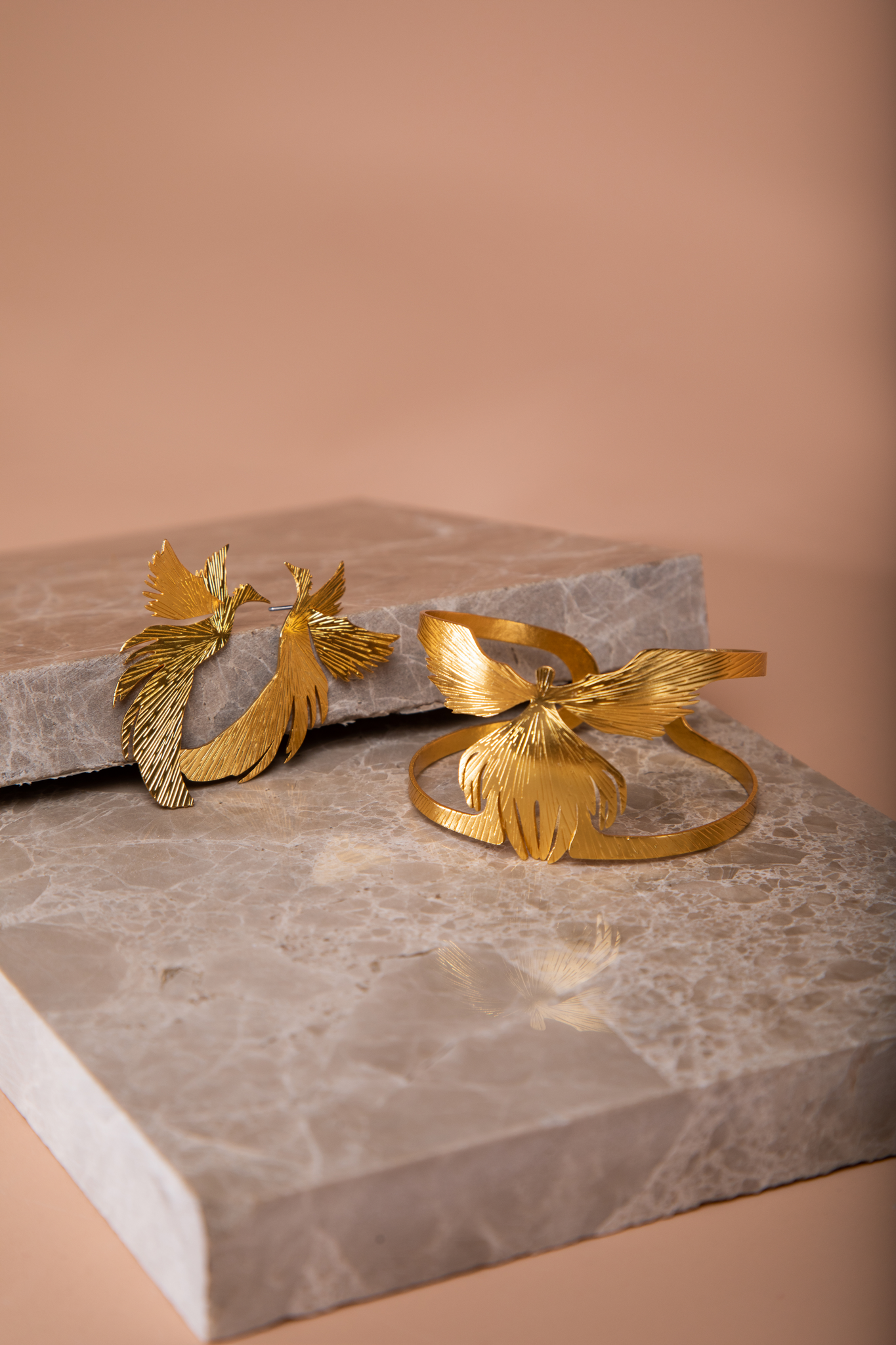 Ear cuff dorado y arete Vuelo de Vida